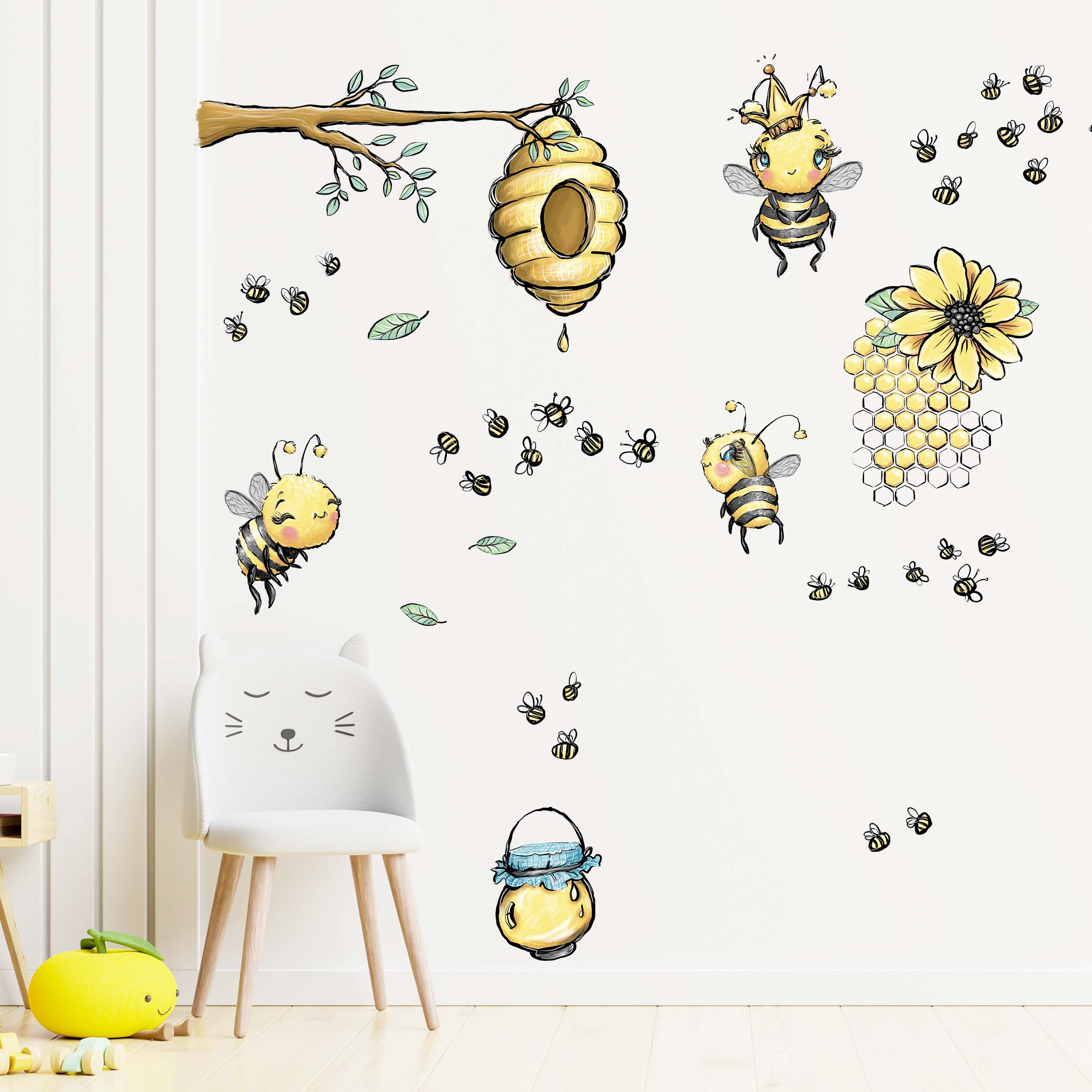 Wie wir alle wissen ist das Bienenvolk sehr fleißig. Mit unserem Bienenstock Wandtattoo bekommen die fleißigen Bienen jetzt einen Platz an deiner Wand. Ob die Honigflasche oder die Bienenkönigin höchst persönlich. Alles passt auf dem Wandaufkleber von WANDKIND.