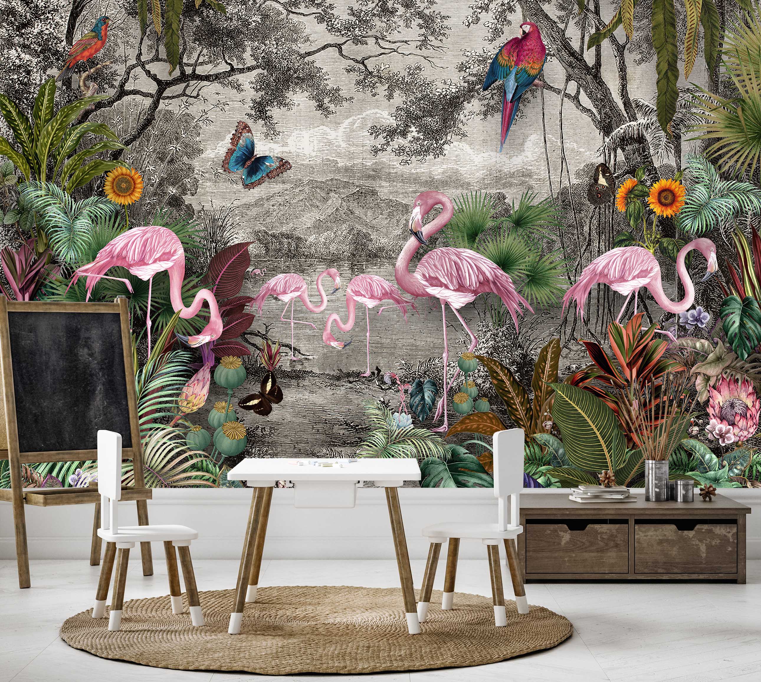 Tauche ein in ein Dschungel-Paradies mit unserer faszinierenden Wandgestaltung 'Dschungel Paradies'