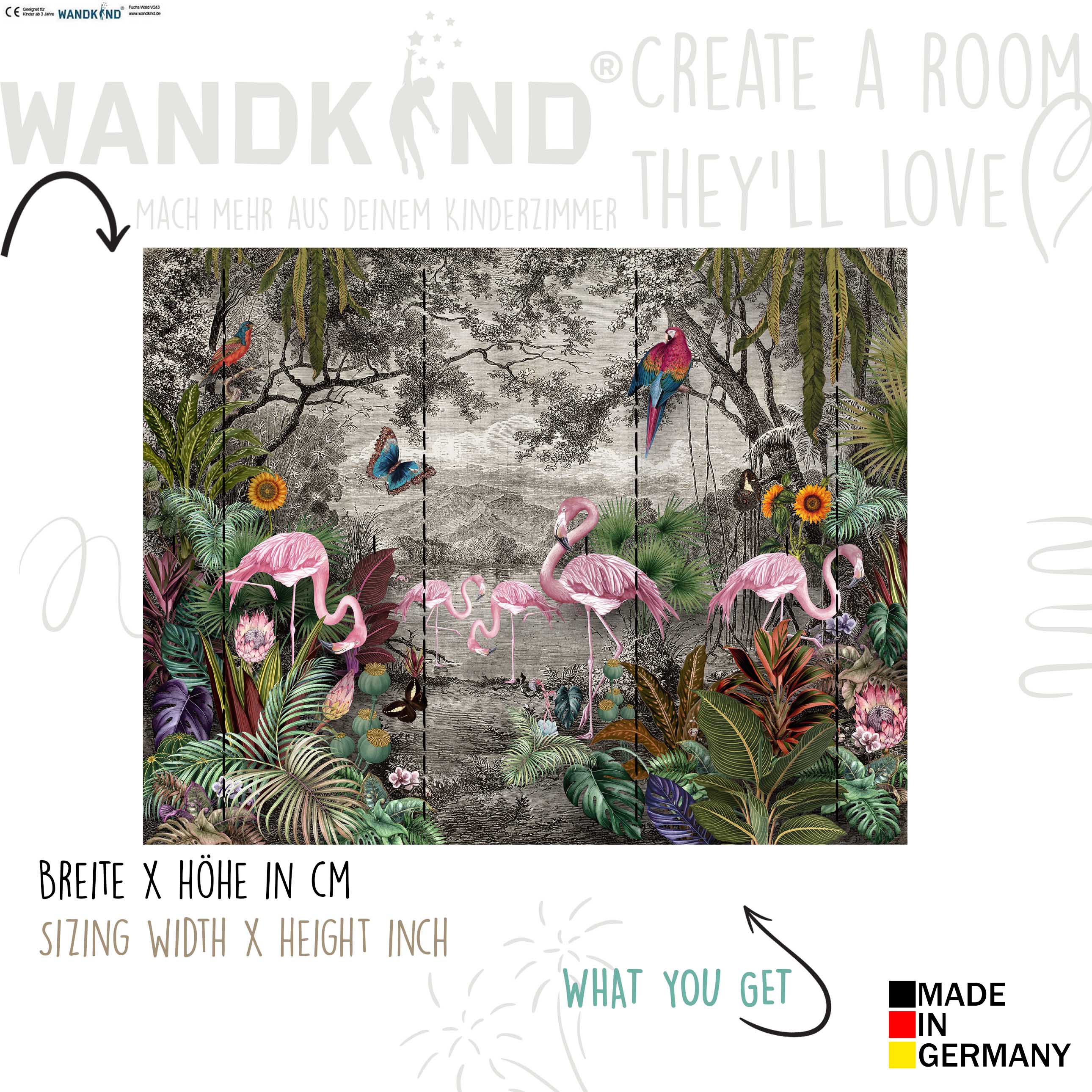 Diese exquisite Wanddekoration zaubert nicht nur Farbe an deine Wände, sondern entführt dich auch in eine exotische Szenerie. Hier tummeln sich wilde Tiere im üppigen Dschungel, begleitet von lebendigen Farben und lebhaften Details.| Material: | Vlies Premium, Selbstklebend |