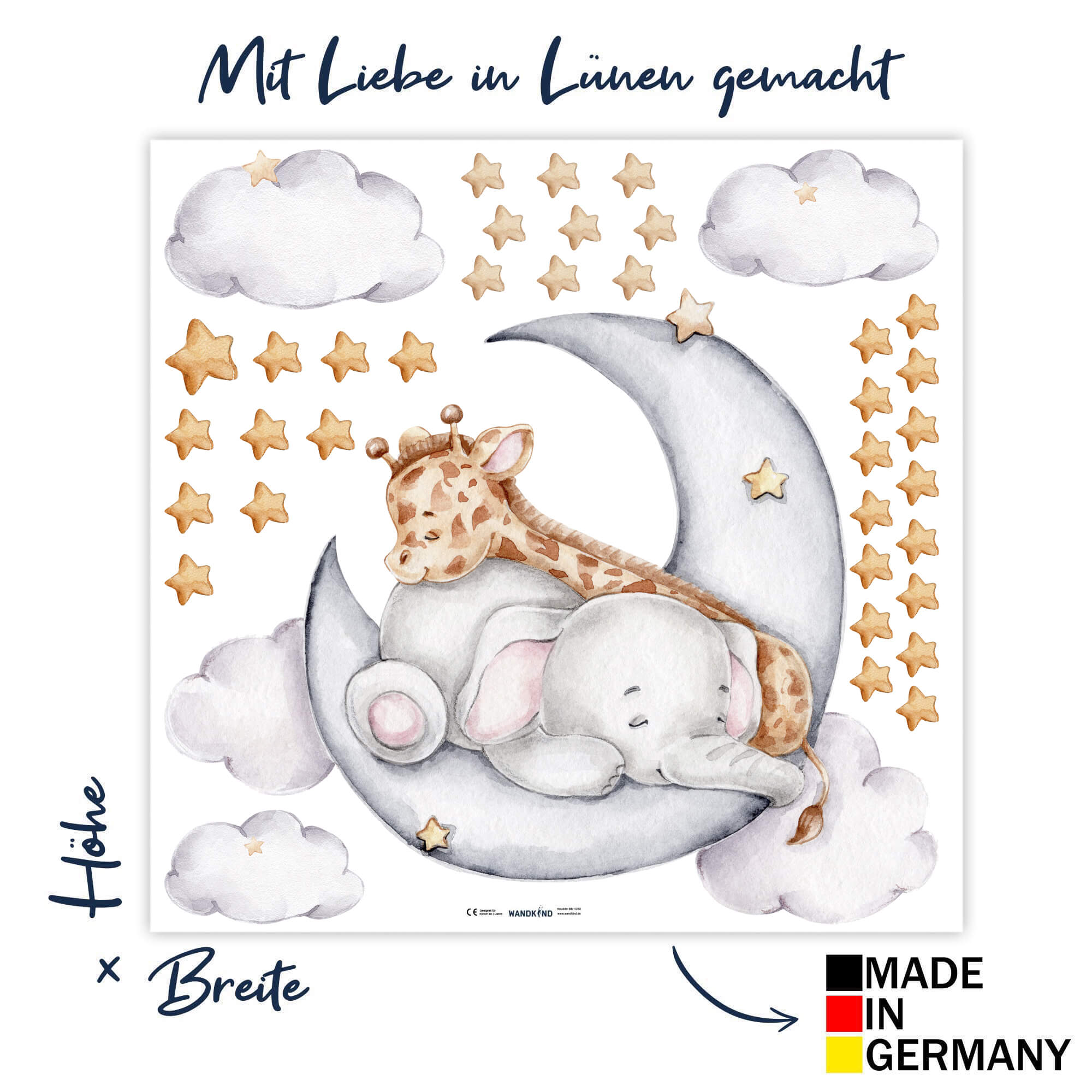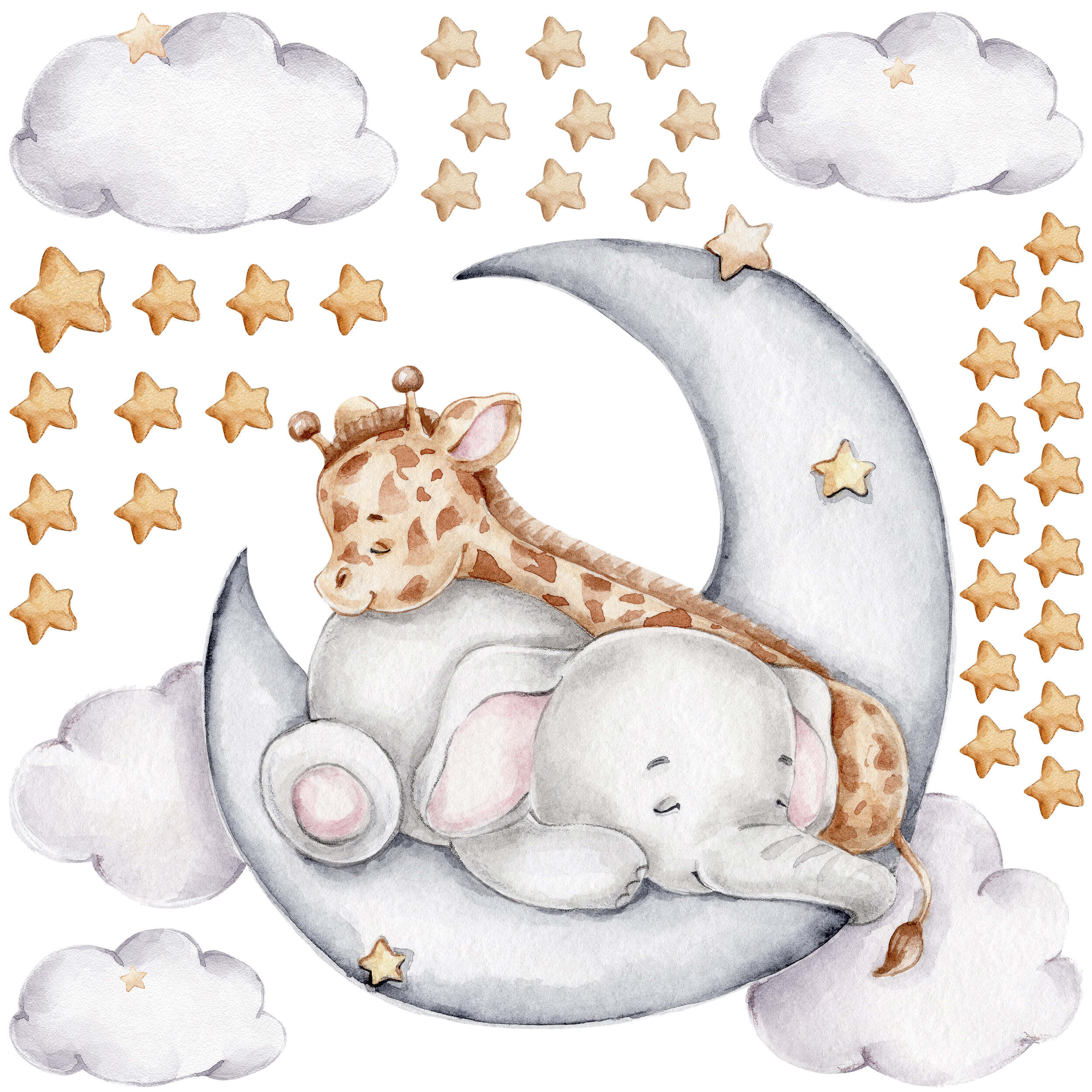 Zauberhaftes Wandtattoo - Schlafende Giraffe und Elefant auf dem Mond!