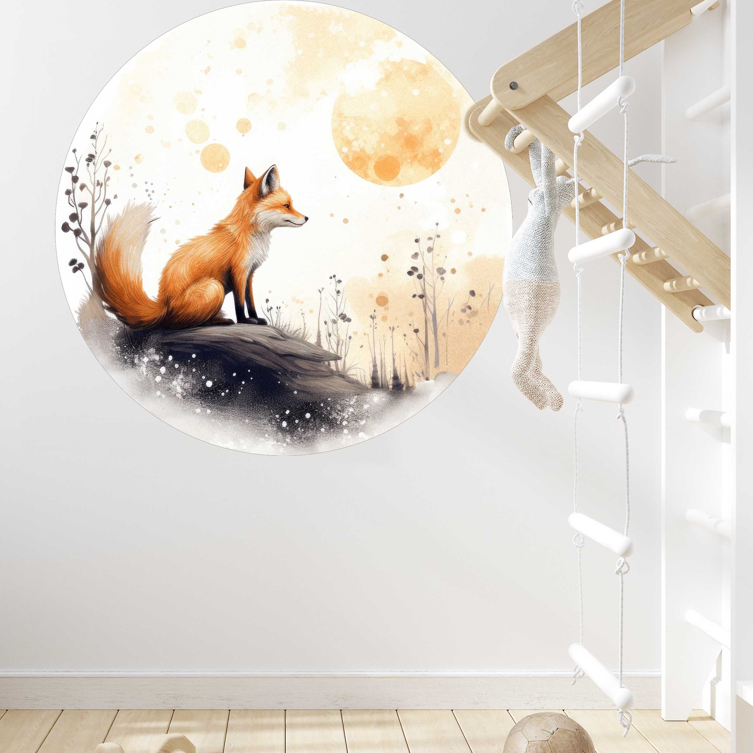Verleihen Sie Ihrem Raum eine zauberhafte Note mit unserem runden Wandtattoo, das einen neugierigen Fuchs auf einem Berggipfel zeigt, der in die Ferne schaut. Dieses bezaubernde Kunstwerk fängt die Schönheit der Natur und die Neugierde des Fuchses in einem einzigartigen Design ein und wird zum Blickfang in jedem Raum.