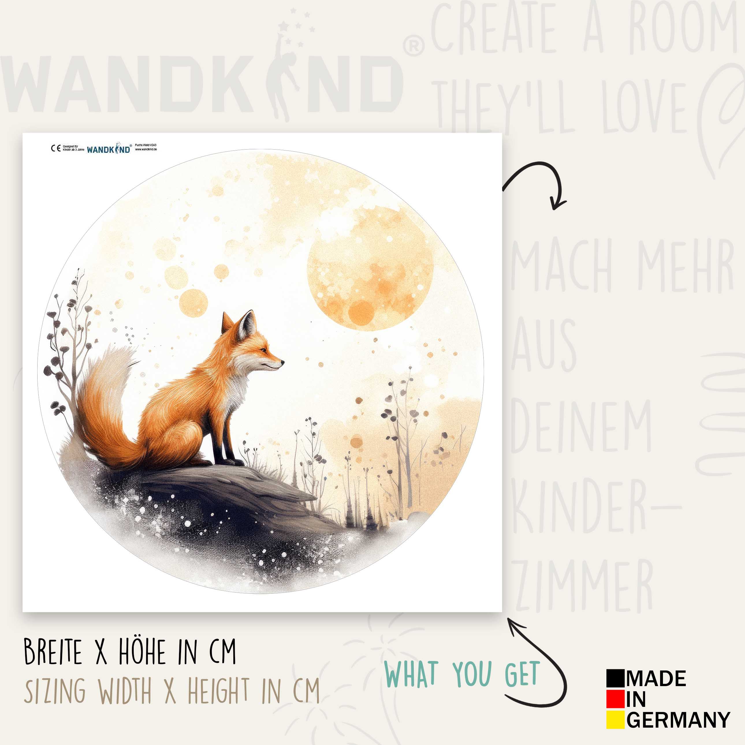 Der majestätliche Mond: Über dem Fuchs erhebt sich ein majestätischer Mond am nächtlichen Himmel. Seine silbernen Strahlen verleihen dem Wandtattoo eine romantische und geheimnisvolle Atmosphäre, die zum Träumen und Nachdenken einlädt.