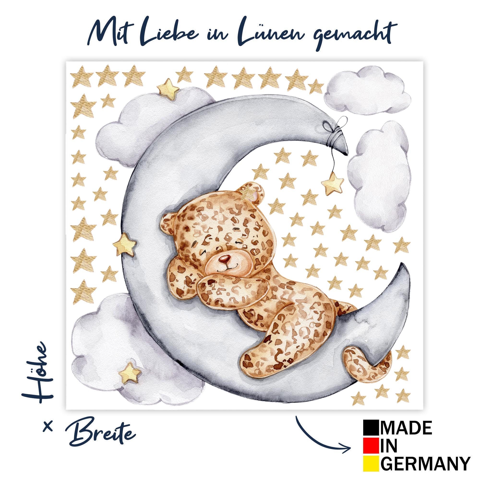 Willkommen in einer fabelhaften Welt der Träume und Fantasie! Unser einzigartiges Wandtattoo zeigt einen entzückenden Babyleopard, der friedlich auf einem schimmernden Halbmond schlummert, umgeben von leuchtenden Sternen. Dieses bezaubernde Motiv entführt dich in eine zauberhafte Atmosphäre, in der du die Sorgen des Alltags hinter dir lassen kannst.DETAILS: