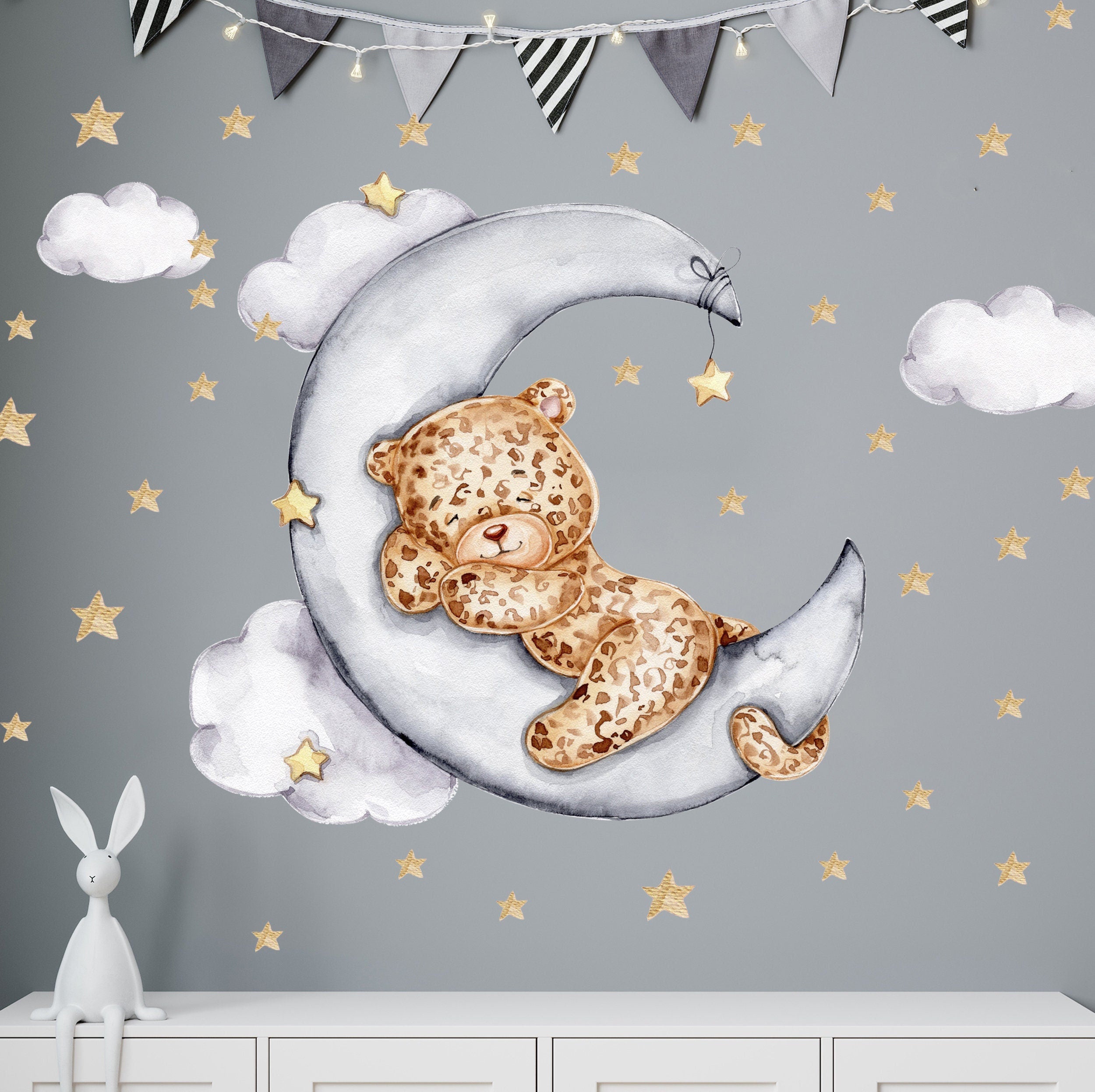 Magisches Wandtattoo: Der schlafende Babyleopard auf dem Halbmond
