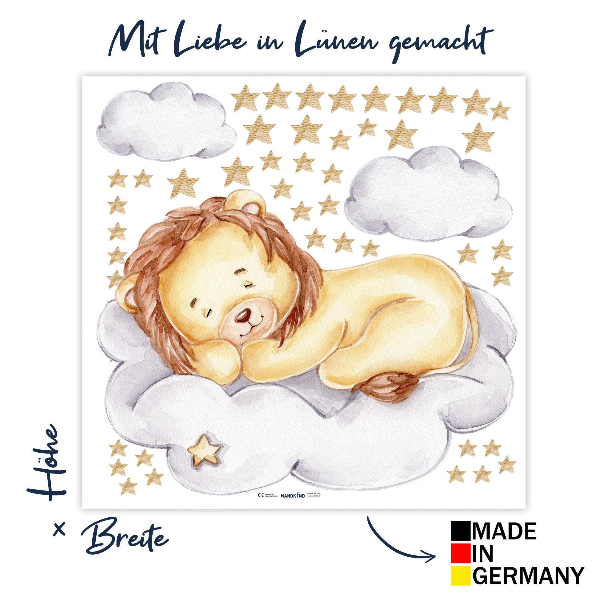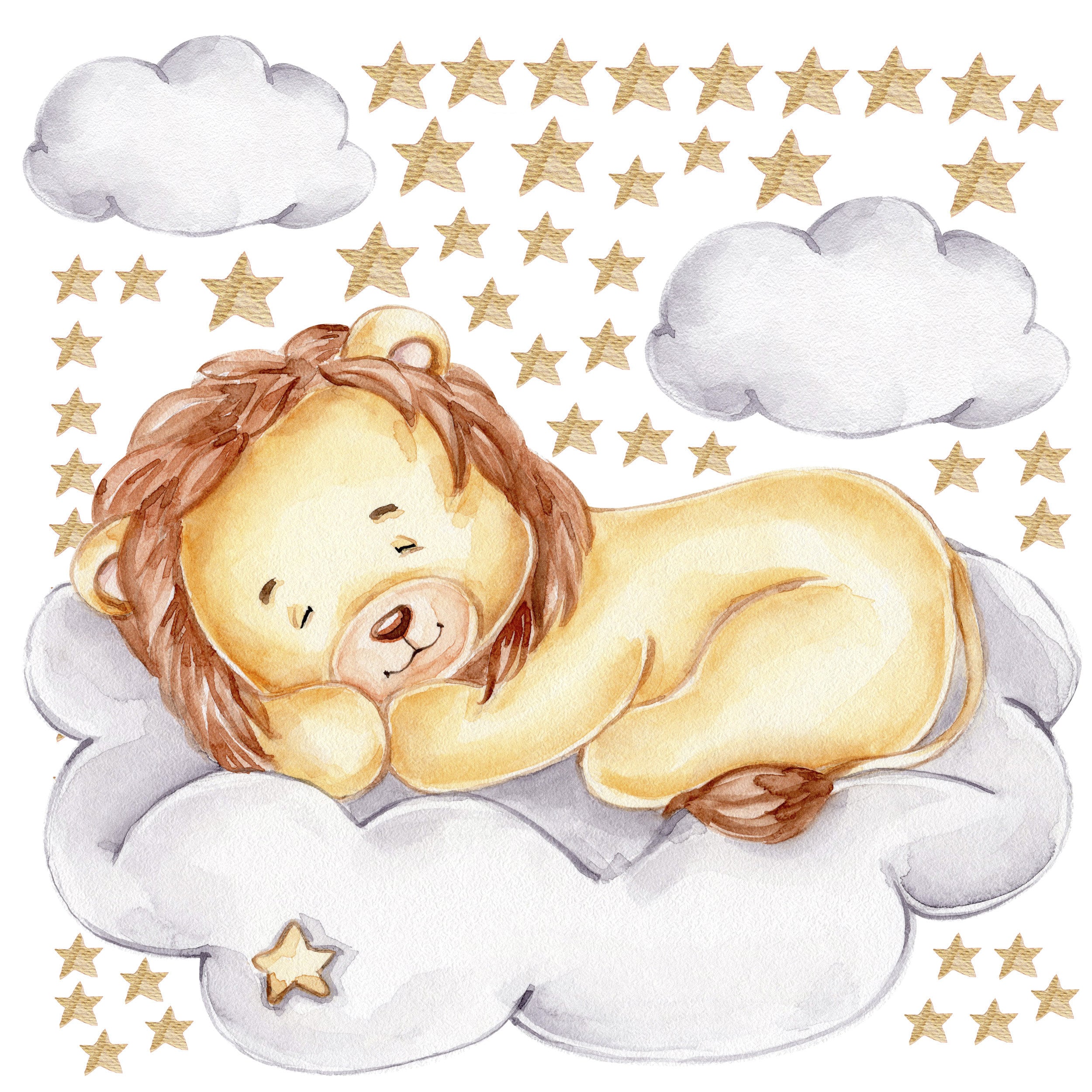 Hoch oben am funkelnden Nachthimmel liegt eine traumhafte Wolke, auf der ein süßer Babylöwe sanft schlummert. Seine majestätische Mähne schimmert im sanften Schein der Sterne, die wie funkelnde Juwelen um ihn herumtanzen. In dieser zauberhaften Szene vereinen sich Träume und Abenteuer. Der schlafende Babylöwe ist mehr als nur ein Wandtattoo – er ist ein Symbol für Ruhe und Zuversicht. Wenn du in sein friedvolles Antlitz blickst, spürst du die magische Energie, die er ausstrahlt. Die funkelnden Sterne umgeben ihn wie ein schützendes Licht, und du fühlst dich geborgen und voller Hoffnung. Dieses Wandtattoo schenkt dir eine Oase der Entspannung und lässt dich von ferne Welten träumen.DETAILS: