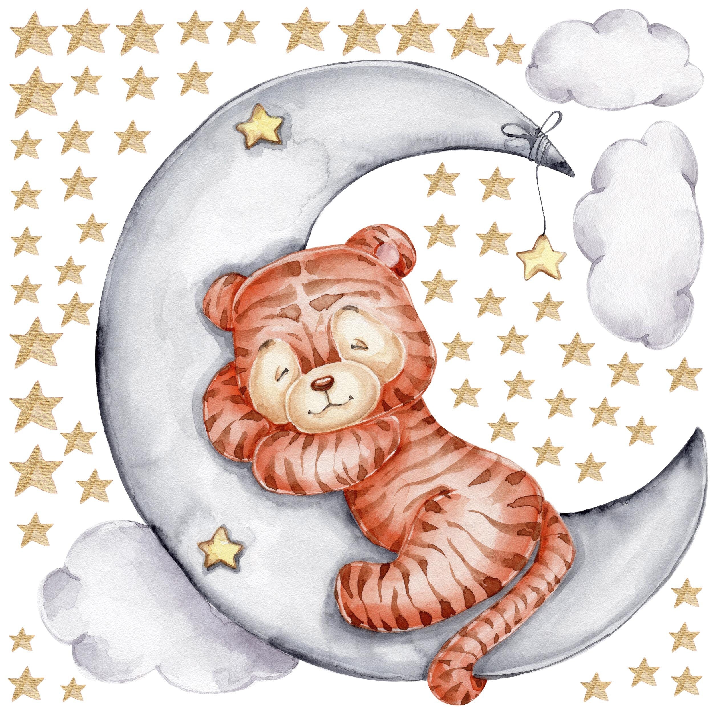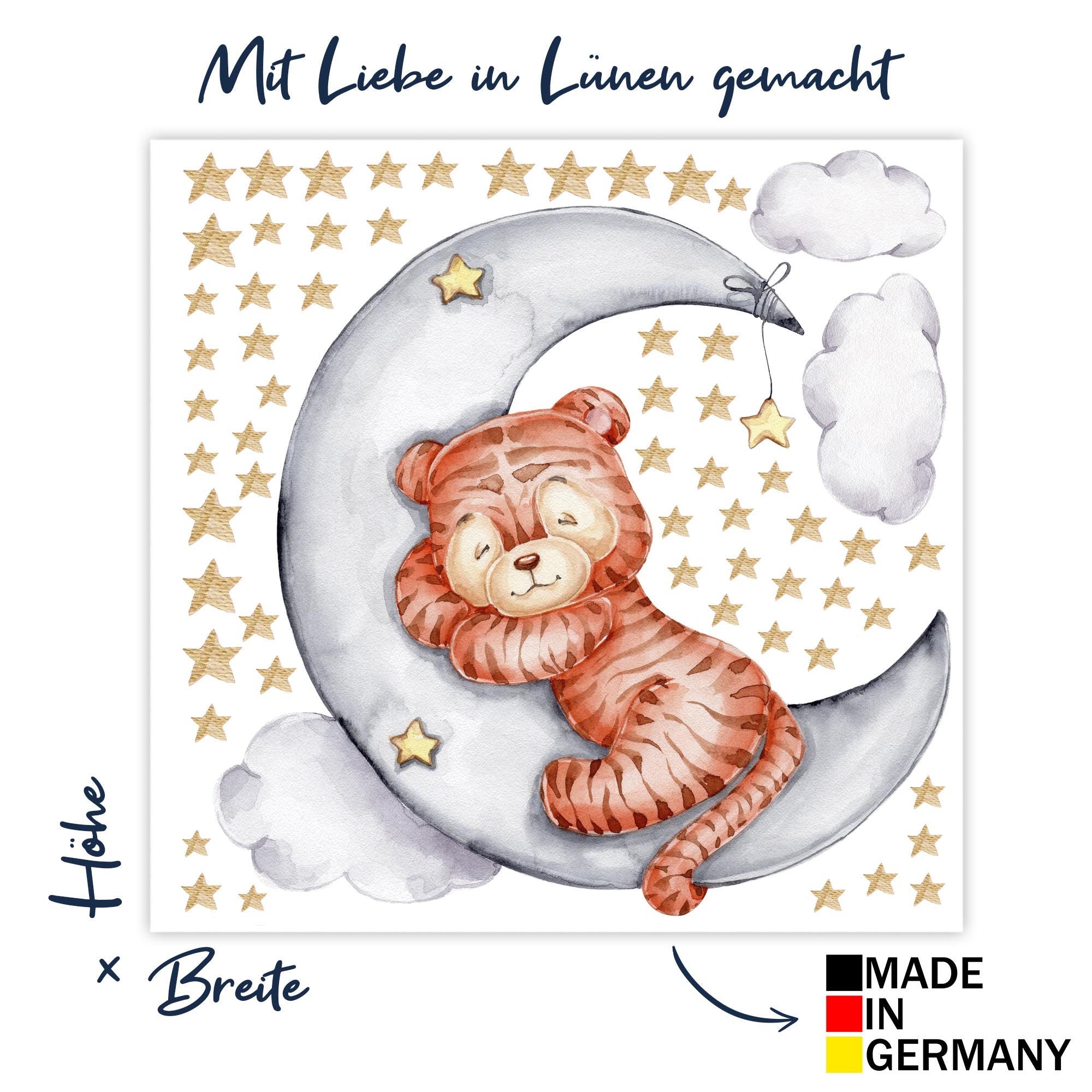 Gemischtes Set aus einem Tiger, Wolken und Sterne. Für Sie persönlich hergestellt mit Liebe in Deutschland anschmiegsame Vinyl-Qualitätsfolie seidenmatte Oberfläche einzigartige Designs für jeden Raum schöne Wände sind schnell realisierbar Raufaser & rückstandsfrei entfernbar selbst gestalten & handgezeichnet Made with love in Germany