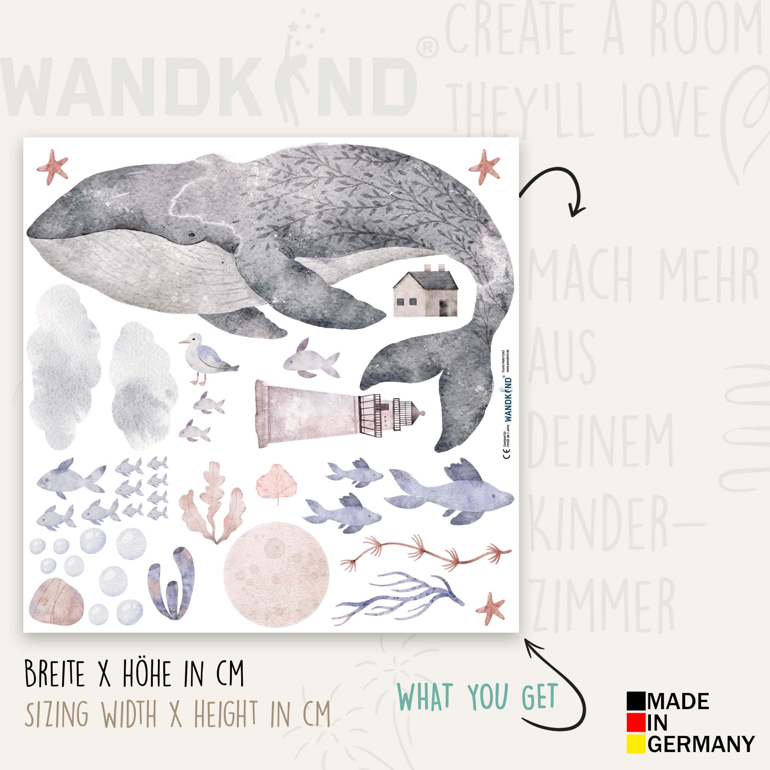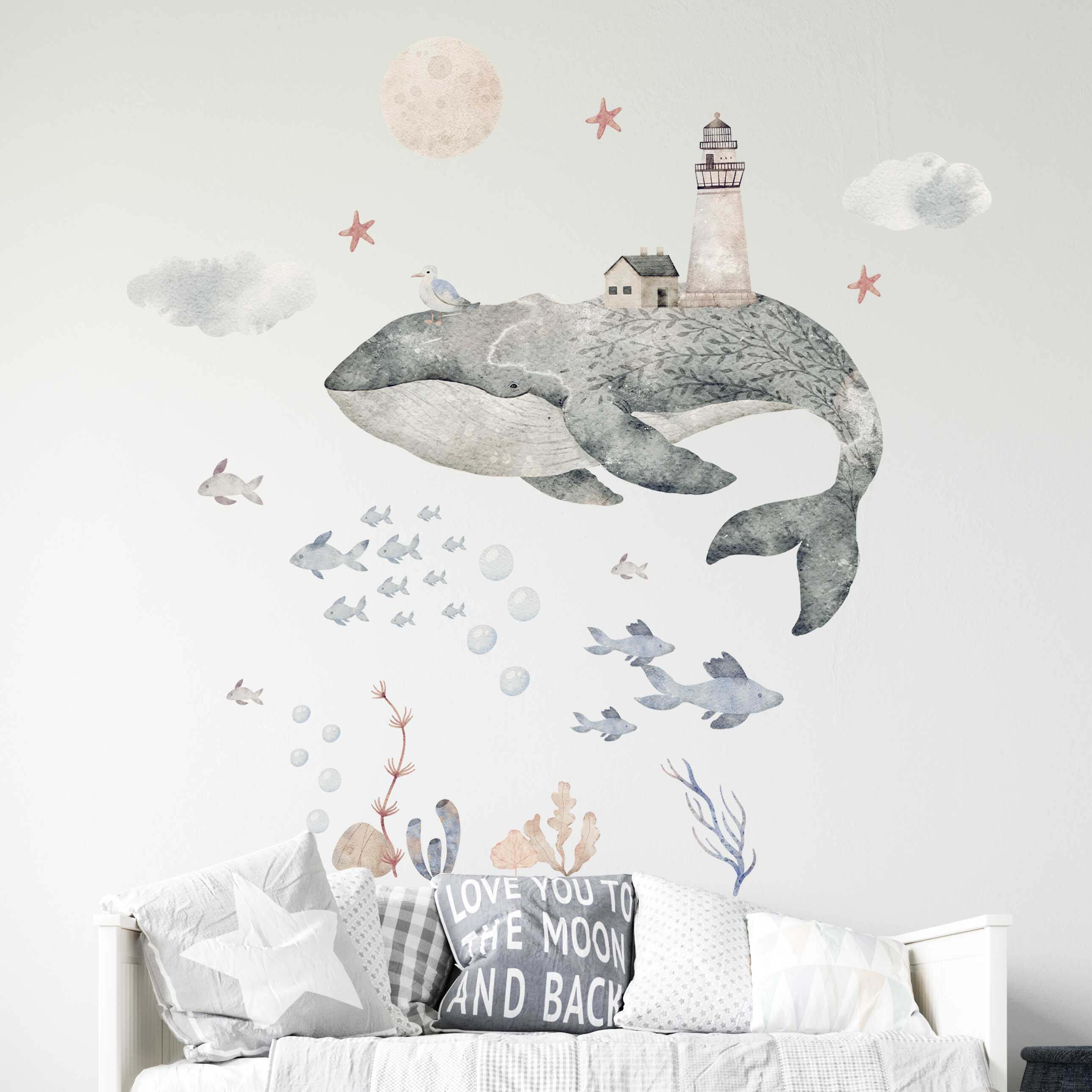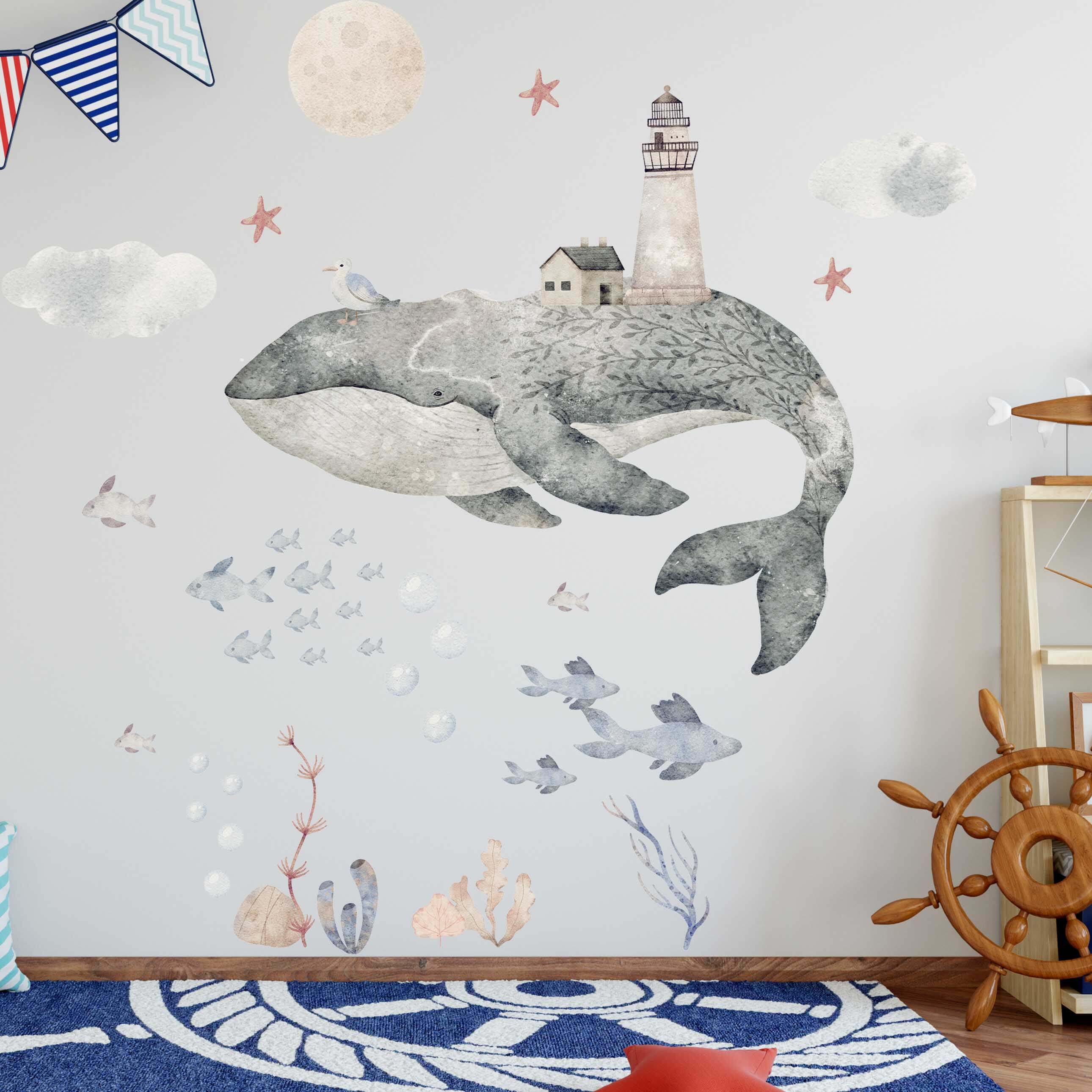 Phantasievolles Wandtattoo Unterwasser Set: Wal, Leuchtturm und mehr für das Kinderzimmer