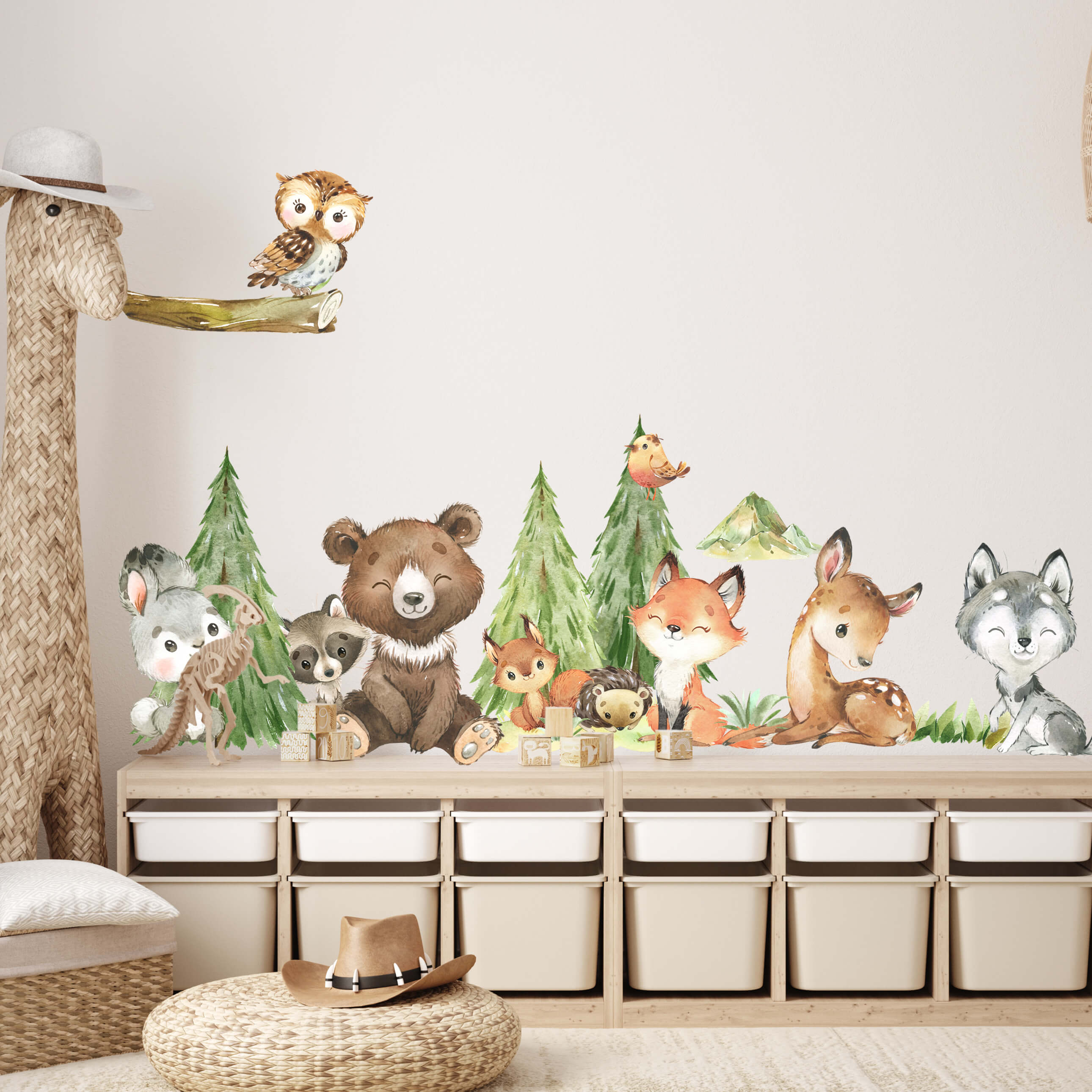 - Niedliches Design: Die süßen Waldtiere – Bär, Reh und Fuchs – in sanften Wasserfarben bringen Wärme und Gemütlichkeit in jeden Raum und sind perfekt für kleine Tierliebhaber.