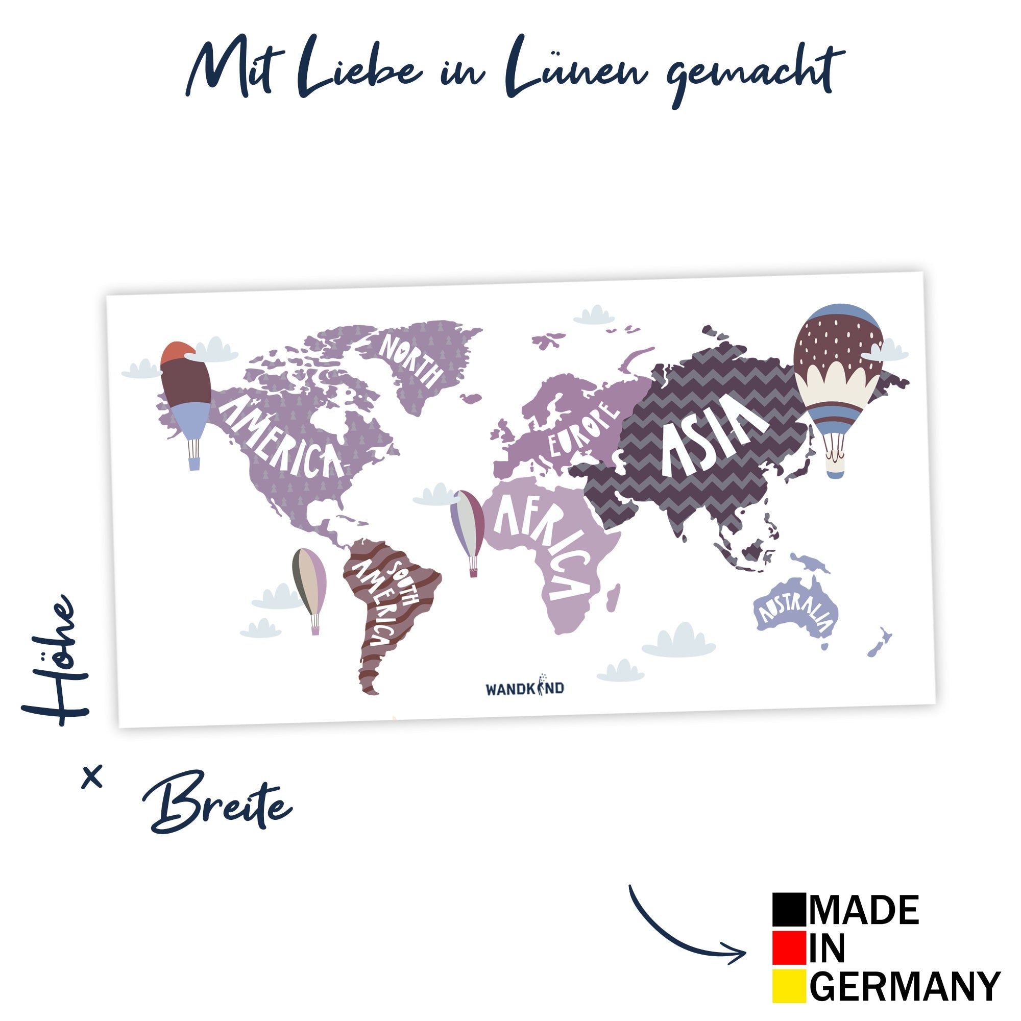 Bereise die sieben Kontinente und entdecke die Schönheit und Vielfalt unserer Erde mit unserer faszinierenden Weltkarte! Wähle aus zwei atemberaubenden Farbkombinationen und drei verschiedenen Größen, um das perfekte Wandtattoo für dein Zuhause zu finden.Die 3 verschiedenen Größen (B x H):