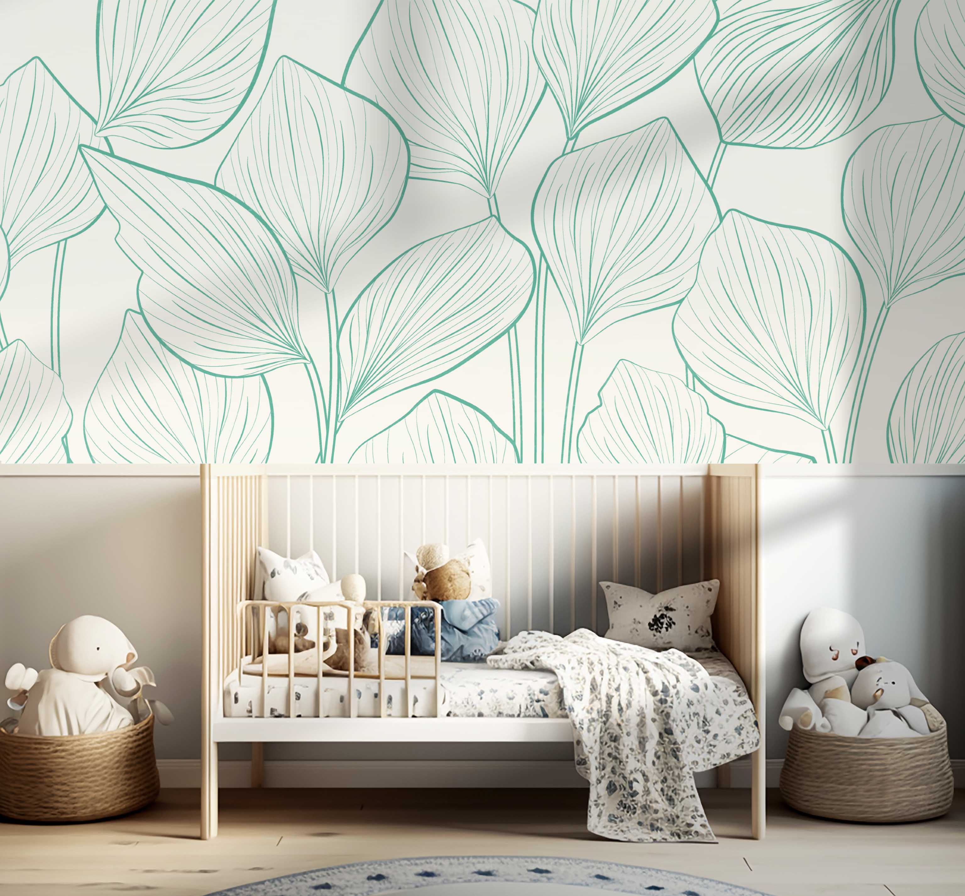 Grüne Akzente, die Leben an die Kinderzimmerwand bringen