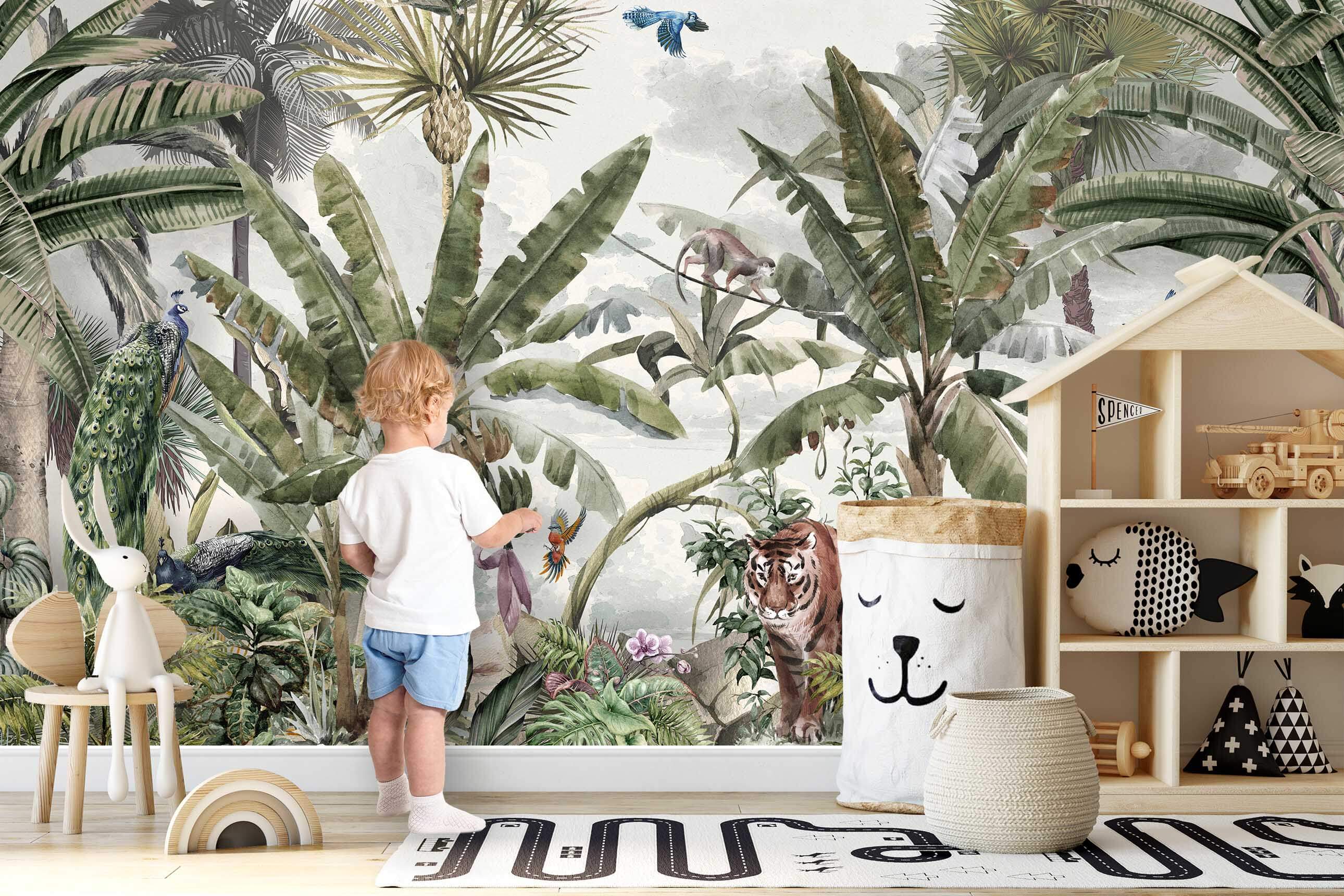 - Mühelose Anbringung: Wähle zwischen der selbstklebenden Variante oder der klassischen Variante mit herkömmlichem Tapetenkleister. Beide Optionen ermöglichen eine problemlose und saubere Installation, damit Du das Kinderzimmer im Handumdrehen in einen Dschungel voller Abenteuer verwandeln kannst.